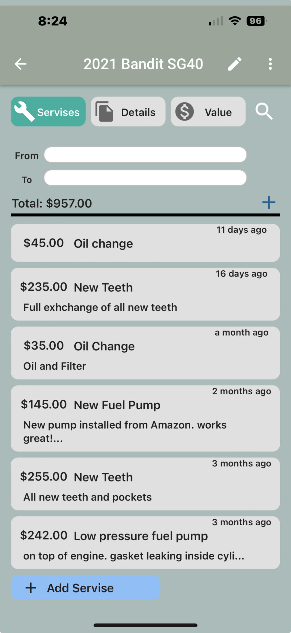 Keep detailed records of your equipment’s service history and expenses.📦 Inventory Management (Coming Soon)